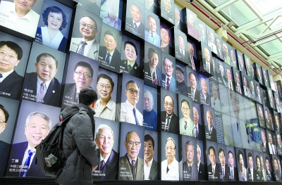 上海科学会堂内,多媒体展示墙集中展示了230位院士图像。 新华社记者 刘颖摄