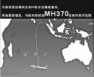 24日晚间,马来西亚总理纳吉布宣布MH370飞机落入南印度洋。