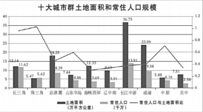 目前,我国学界比较公认的10大城市群,共涉及129个地级市,占地级市总量的45.42%;土地面积达到152.53万平方公里,占国土面积的15.89%;2010年常住人口6.73亿,占全国总人口的50.19%;地区生产总值实现29.20万亿元,占全国总量的73.03%,是我国经济社会发展中当之无愧的中流砥柱。