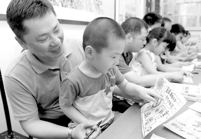6月12日,安徽省合肥市琥珀山庄第一幼儿园邀请小朋友们给爸爸制作“不酒驾”“不吸烟”的小贴士,作为父亲节的礼物。新华社记者 郭晨摄