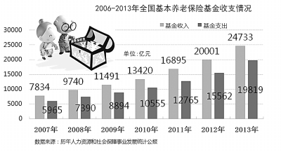 2007-2013年全国基本养老保险基金收支情况 制图:邱玥