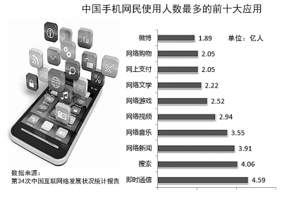 2014年上半年中国手机网民使用人数最多的前十大应用 制图:陈恒