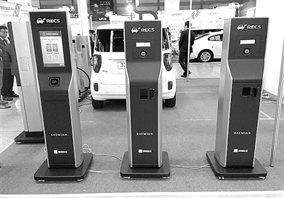 韩国企业设计的多款电动汽车充电设备。 本报驻首尔记者 杨明摄