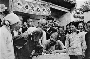 取消“农业户口”与“非农业户口”的性质区分具有历史意义。以前“统销”分配的依据就是户口。图为上世纪五十年代农民报名加入农业生产合作社。(资料图片)