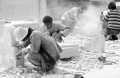 石雕工人经常受到严重的粉尘污染