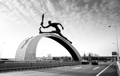 以《火炬手》为主题的大型雕塑,立于南京通向世界的国际机场高速公路边,夸张拉长的火炬手,其矫健奔跑的姿势,标志一个城市、一个民族、一个时代的超越。其雄健与豪迈,其39米的跨度成为雕塑史上最大的“火炬手”——“你是力的源泉,你是爱的使者,是奥运精神的传播者!”