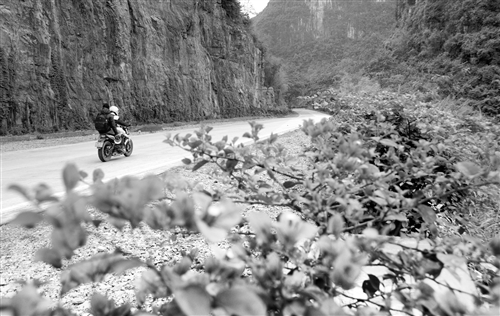 公路旁满眼绿色,已成马山弄拉一道靓丽的风景线(潘章勇 摄)