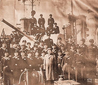 主席在舰期间,还为我们的军舰题了词:“为了反对帝国主义的侵略,我们一定要建立强大的海军!”2月21日,这一题词公开发表,从此成为解放军加强海军建设的指导方针,也成为令我终生难忘的嘱托。
