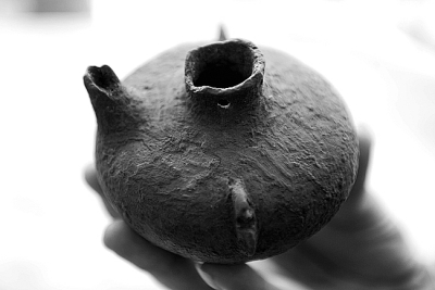 贾湖遗址发掘出土的双耳红陶壶 新华社记者 朱祥摄