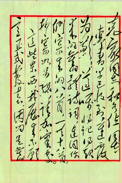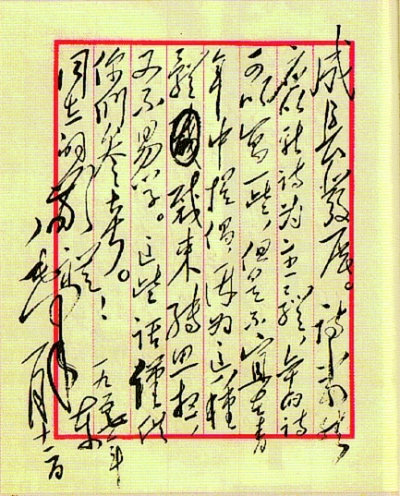 这封上书是由谁执笔誊清的,若干年后有过不同的说法,直到1997年5月底,父亲(那时正因病住在协和医院)派我和我爱人汪本静二人从中央档案馆取回上书毛主席信的复印件,“争议”自然就解决了。信是父亲用毛笔抄写的,写信的时间是1956年11月21日。信的全文如下: