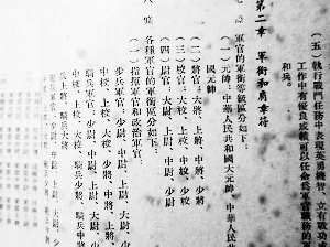1953年,军委总干部部据此草拟出《中华人民共和国人民解放军军衔条例(草案)》。草案第三条拟定的“军衔等级的区分”是:“一、元帅军衔——中华人民共和国大元帅、中华人民共和国元帅、兵种元帅。二、将官军衔——大将、上将、中将、少将。三、校官军衔——大校、上校、中校、少校。四、尉官军衔——大尉、上尉、中尉、少尉……”