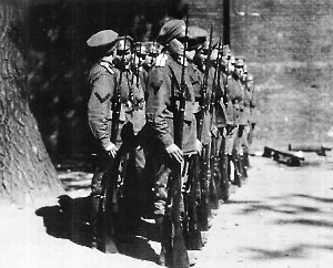▲旷日持久的战争使男人长期服役,大量的伤亡需要不断补充兵员。图为一战时期俄国军队的光头妇女营。