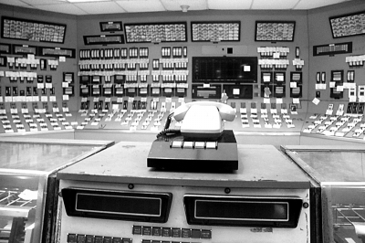 离开核反应堆,下一个参观场所是电站中枢总控室。百余平方米的空间里,密密麻麻摆放着一圈各式控制台。瑞告诉记者,这里和当初的摆设一模一样,只需把老旧的线路换掉,即可照常工作。屋内所有的按钮上都写有标识,覆盖着塑料薄膜,只有屋子中央总控制台上那台醒目的、直通总统府的电话机仿佛还在诉说着电站往日的荣光。