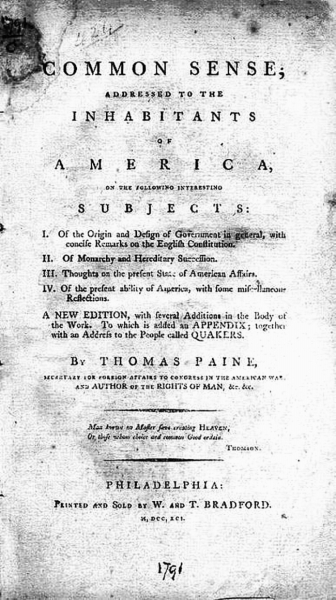 《常识》(《Common Sense》)一书的扉页。资料图片