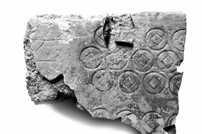 判断是不是铸钱作坊的一个重要依据是看有没有钱范(磨具)。他们很快在窑室及附近文化层中发现了150余块钱范(陶母范)、其他陶范20余块。其中有9块有确切纪年的钱范,上有文字“始建国元年三月”“钟官工……”和“大泉五十”“小泉直一”等字样。而“始建国”就是王莽年号,即公元9年。
