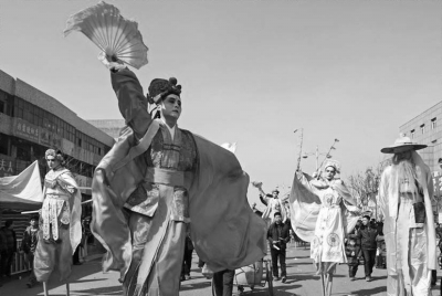 小调曲子是清朝末年,由洛阳经汝州传入鲁山一带。因为曲调简单、易唱易学,很快就在鲁山发展起来。不过那时的曲子戏尚未登台,而是采用“高腿”的形式演出,故而当时的曲子戏民间俗称“高跷曲”“高跷故事”。演唱者腿上绑着三四尺高的木制跷腿,一边踩着高跷走动一边演唱,一来唱戏听得清,二来扮相看得见,故而群众喜闻乐见。