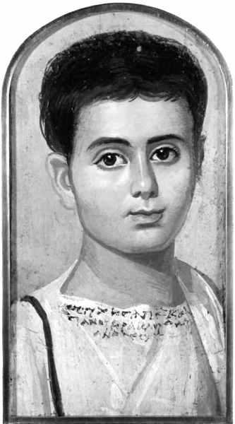图为出自埃及特布突尼斯的木乃伊肖像,系一对母子。