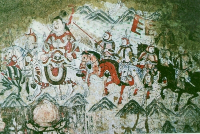 《王者出行图》壁画(局部) 本报记者王瑟摄