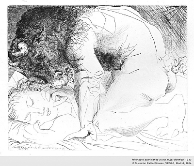 牛头人身怪爱抚一个熟睡中的女人(局部·铜版画 干刻法 1933年) 中国国家博物馆供图