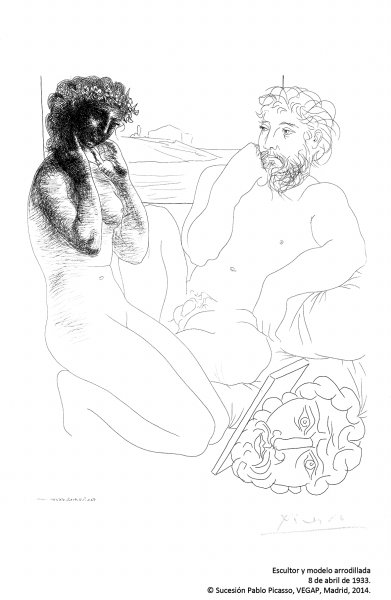 沃拉尔版画是毕加索创作力爆发期的硕果,深入挖掘了他内心的冲动。这些情思可按六个部分划分:各种主题、伦勃朗、爱之战、雕塑家的工作室、牛头人身怪和沃拉尔肖像。此时,毕加索重新被古代雕塑与艺术吸引,对古典时代极为着迷,古希腊雕塑风格启发和呼唤着他。这些描绘男主人公的素描,线条清晰明快,完美程度令人惊异。