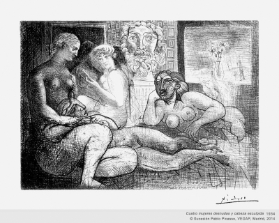 四个裸体女人和一颗雕塑头颅(局部·铜版画 蚀刻法及刻刀技法 1934年)中国国家博物馆供图