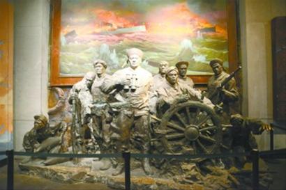 “中国甲午战争博物馆陈列馆”中的邓世昌雕塑。