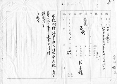 收到批复后,国立北平图书馆即通知张申府到馆上班,并向高教会发了他到馆日期的报告。报告说张申府于9月2日已经到馆工作,月薪从到馆日期开始支付。