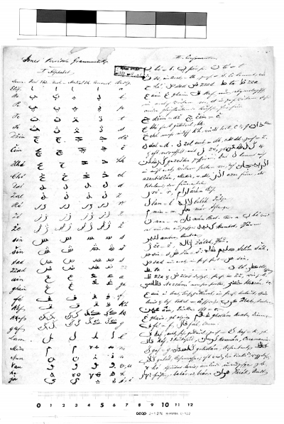 这份笔记的手稿原藏于俄罗斯国家社会政治史档案馆,共4页,每页分左右两栏书写在宽约20cm、高约27cm的白纸上,主要语言为德语和新波斯语,其中恩格斯摹写的波斯文字呈现为略带生涩的纳斯赫体。据笔者初步释读,这份笔记写于1853年5月到6月间,摘自英国东方学家威廉·琼斯爵士的《波斯语语法》。恩格斯的学习笔记,除一份常见的波斯语字母表外,仅从原书摘录了“字母表”“辅音”“元音”“名词”“形容词”这5部分。尽管只涵盖了原书近1/5的内容,但这份手稿的确为考察恩格斯的外语学习提供了新的证据:他确实是首先从语法的基本规则入手,然后便转而阅读古典作家作品和报刊杂志,以熟悉句法和生词。但这并不是说他“不直接研究语法”。