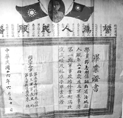 彭志刚的国民革命军教导团毕业证 徐宝来摄