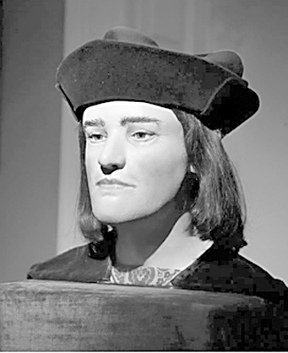 理查于1483年加冕为王,当时英国处于玫瑰战争之中。在位期间,理查资助教堂和学校,建立了北方议会,还颁布了一些保护个人权利的法律。不过,他的统治仅仅持续两年,便被兰开斯特家族推翻。1485年,亨利·都铎(即后来的亨利七世)发动叛乱,理查三世命丧博斯沃思平原,时年32岁,成为最后一个死在战场上的英国国王。据史料记载,他战死后尸体曾被裸体示众,最后葬在莱斯特的圣方济会教堂中。后来,随着亨利八世上台与宗教改革的推行,英国许多修道院都被夷为平地,理查的墓碑也因而搬到别处,墓穴的确切位置再也不为人知。
