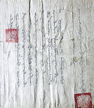 在这张早已泛黄的经幡上,密密麻麻的藏文书写的不是祈福的经文,而是一段见证新中国军民团结、民族团结的收条内文。