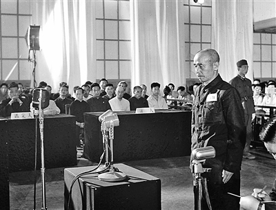 下图:最高人民法院特别军事法庭1956年6月9日起审理8名日本侵略中国战争中的战争犯罪分子。这是日本战犯长岛勤在法庭上。新华社发