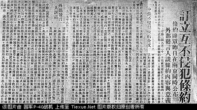 图为《中苏互不侵犯条约》签订后的国内报纸报道。法国《巴黎时报》称赞中苏互不侵犯条约的缔结,实为“插入日本蛮牛颈上的一支火箭”。