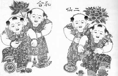 和合的思想在民间成为信念。传说唐代有两个和尚,一个叫做寒山,一个叫拾得。在佛教中,寒山为文殊菩萨化身,拾得是普贤菩萨的化身。传说寒山和拾得在唐贞观年间到苏州好利普明塔院任主持,改名为寒山寺。唐代张继有首诗叫做《枫桥夜泊》写的就是这个寺庙。