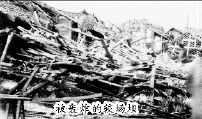 日军轰炸四川省梁山县(今重庆市梁平县)东正街,群众死亡及房屋毁坏现场图片。
