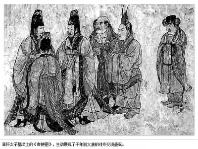 章怀太子墓出土的《客使图》,生动再现了唐代对外交流的盛况,体现出了文化理念上的开放性。