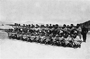 ▶洋务派进行军事改革,使大清军队接近现代化。图为在训练中的北洋水师。