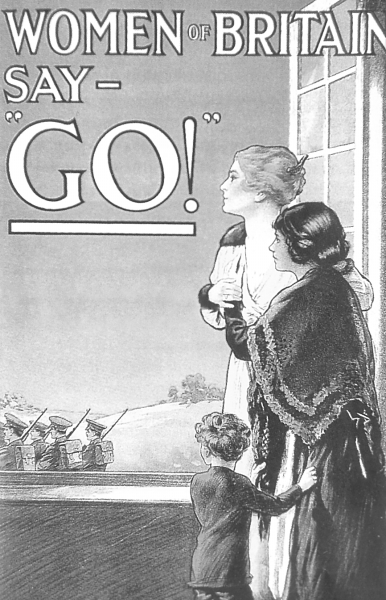 英国一战宣传海报,表现的是英国妇女鼓励她们的丈夫和儿子踏上战场