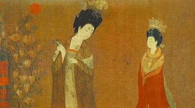 白居易的一曲《长恨歌》,不仅把唐明皇与杨贵妃的爱情故事描写得荡气回肠,也将杨贵妃的美表现得淋漓尽致。杨贵妃肤如凝脂、天生丽质自不用说,而发髻上的那支步摇花,更是点缀出她无限的娇媚。“云鬓花颜金步摇”,如花的容颜,似云的鬓发,莲步轻移,步摇微颤。每一步,每一摇,每一次微颤,都是一种娇媚,一种风情。那样的美,怎能不令人心神荡漾?和凝的《临江仙》中同样也有这样一段旖旎情事:“披袍窣地红宫锦,莺语时转轻音。碧罗冠子稳犀簪,凤凰双飐步摇金。肌骨细匀红玉软,脸波微送春心。娇羞不肯入鸳衾,兰膏光里两情深。”一位衣着华丽的女子,语音婉转,颜如红玉,秋波含情,情意绵绵,娇羞无限。女子头上那轻颤的步摇,更是摇动着男人内心最深处的那份悸动。