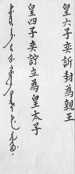图为道光帝临终前秘密立储的原始档案,是我国现存的惟一由皇帝亲笔所书关于封建皇帝承袭传位的原始文献。