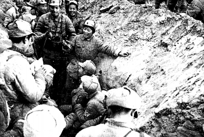 1947年1月鲁南战役时,陈荣兰在华野1纵2师5团阵地前沿宣传鼓动。