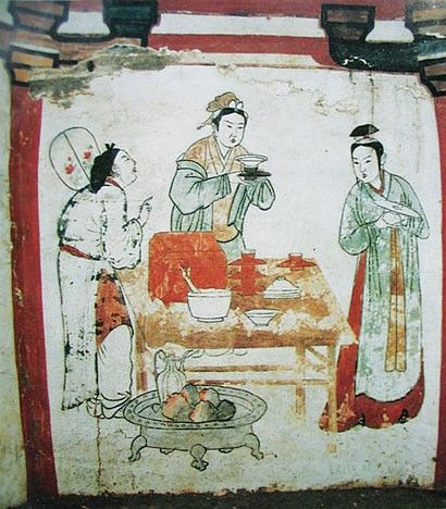 河北宣化辽代壁画之备茶图