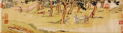 明代仇英所作《写经换茶图》