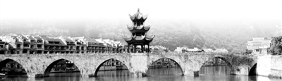 贵州镇远青龙洞前祝圣桥上有一对联:“扫尽五溪烟,汉使浮槎撑斗去;劈开重驿路,缅人骑象过桥来。”这里的五溪是指湘黔交界处的五条主要河流。古时缅甸和云南方向的朝贡物品都要经过这个桥走水路才能进入中原。这副对联可以说是汉代以降西南丝绸之路的生动写照。