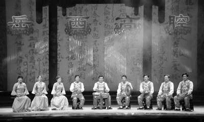 “喜曲”是在民间民俗文化活动中演唱的喜庆吉祥曲目,仪式性强于戏剧性,展现了岳西高腔的独特个性,约有70余出。其中,“专用喜曲”50曲。如贺新婚唱《撒帐》,送子唱《观音送子》,贺寿唱《八仙庆寿》,送考唱《魁星点元》等等。可以说,喜曲渗透到民众生活的方方面面。喜曲服务于民俗,民俗需要喜曲,二者相互依存。岳西高腔中喜曲数量虽不多,但举足轻重,是维系岳西高腔薪火相传并传延至今的“生存之曲”。