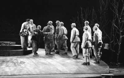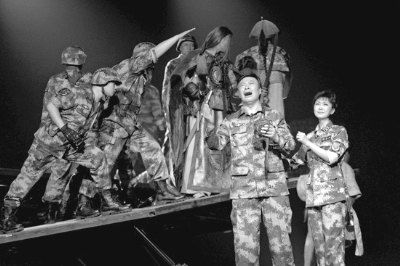 三是塑造军人群象,刻画铁血军魂。新时期军旅戏剧,不仅题材广泛,内容丰富,而且艺术质量有了明显的提高。20世纪80年代主要的剧目有:《天山深处》(李斌奎、唐栋编剧,1981)、《宋指导员的日记》(漠雁、肖玉泽编剧,1982)、《高山下的花环》(俞智先、于德义编剧,1983)、《天堂里来的士兵》(姚远编剧,1986)等。20世纪90年代有:《海军世家》(周振天编剧,1990)、《天边有一簇圣火》(郑振环编剧,1990)、《冰山情》(郑振环编剧,1991)、《甘巴拉》(丁一三等编剧,1995)、《虎踞钟山》(邵钧林、嵇道青编剧,1997)等。进入21 世纪之后,尽管出于精兵强兵的需要,一些部队的话剧院团被合并或撤销,但军事题材戏剧的创作和演出依然红火。主要剧目有《老兵骆驼》(孟冰编剧,2001)、《爱尔纳,突击》(兰晓龙编剧,2003)、《黄土谣》(孟冰编剧,2004)等等。这些剧作不仅保存了部队文艺讴歌理想、鼓舞士气的优良传统,而且展现了新时期以来部队工作所面临的新问题,以及在新的时代环境中新一代军人的成长经历。