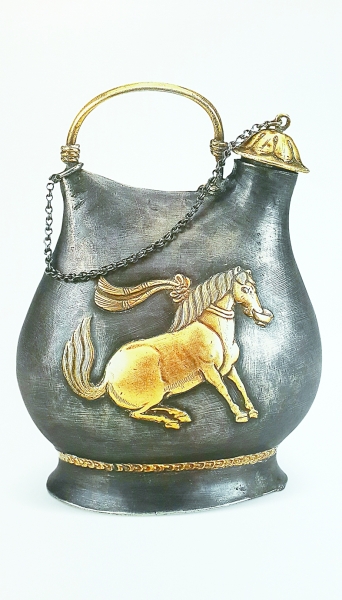图为陕西历史博物馆收藏的唐舞马衔杯银壶 |
