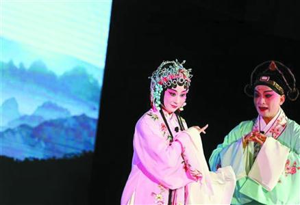 上图为中英纪念汤显祖、莎士比亚逝世400周年研讨会上,上海昆曲团表演《牡丹亭·惊梦》