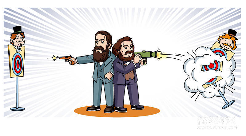 恩格斯的文章就像轻武器,能够非常精准地打到敌人的痛处;马克思的文章就像重武器,直接给敌人以毁灭性的打击。苏凝/画
