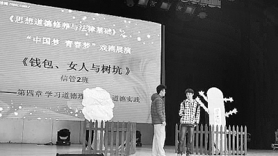 北京物资学院2013年思想道德修养与法律基础之“中国梦、青春梦”戏剧展演。 本报记者 李玉兰摄